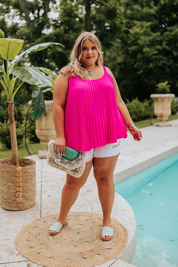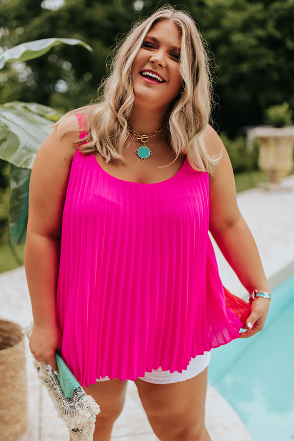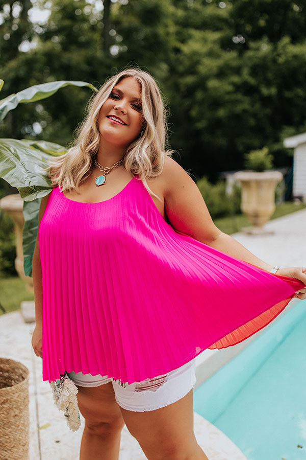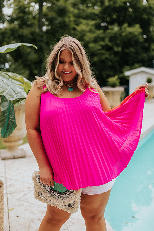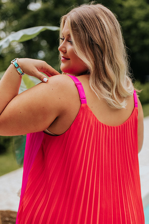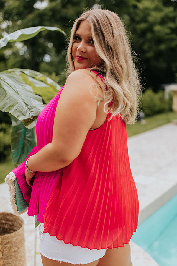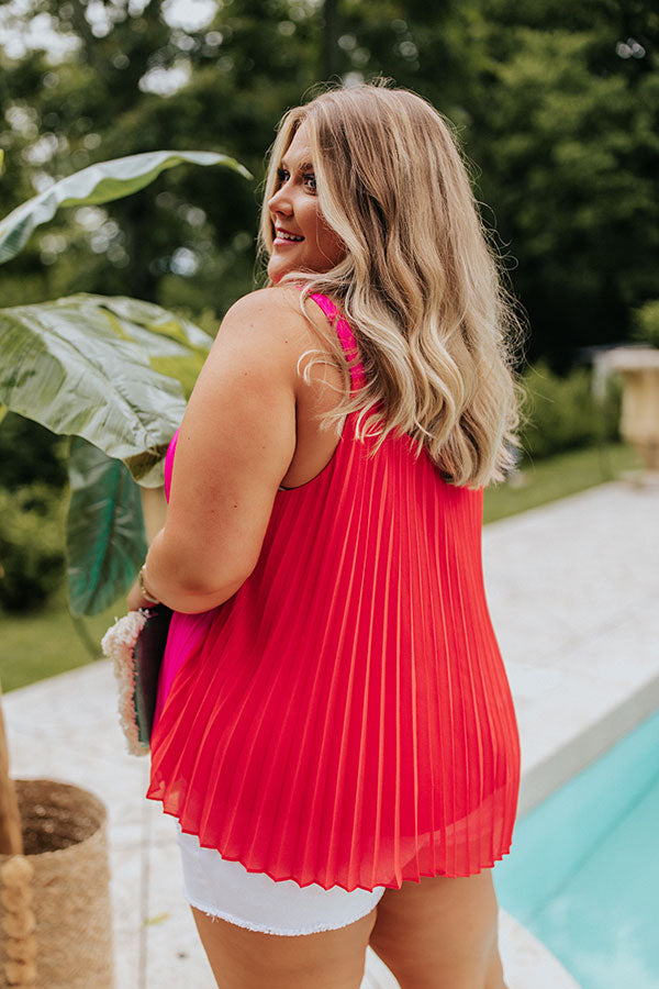 Plus Size - We don't blame you for adding this cute tank to your cart...it's hard to resist! It features lightweight flowy material with pleated texturing, a hot pink front and a red/orange back, a scooped neckline and upper back with adjustable spaghetti straps, and a relaxed silhouette that falls into an uneven hemline! Measurements