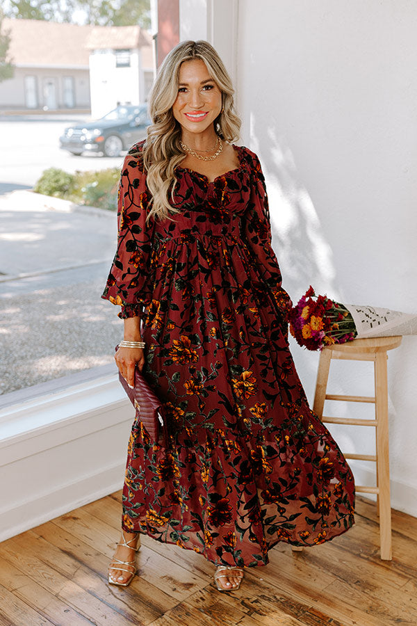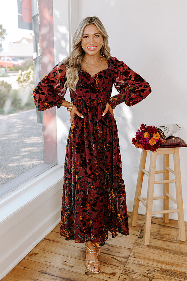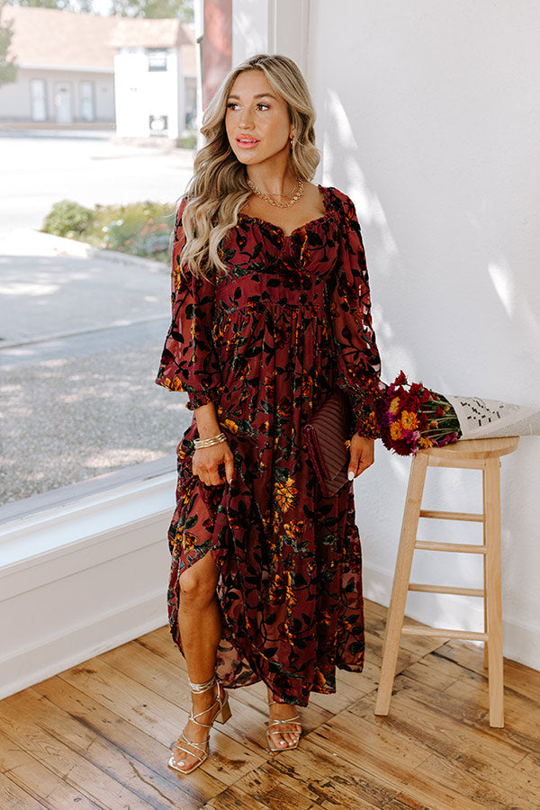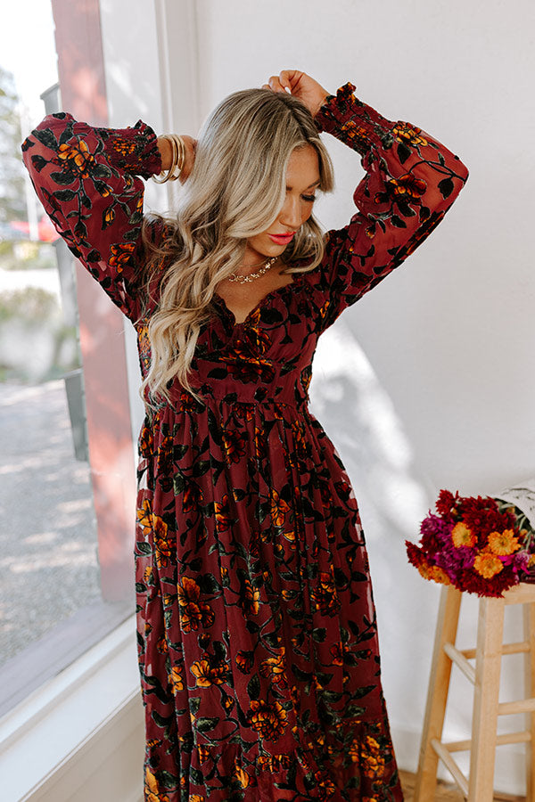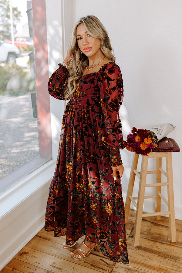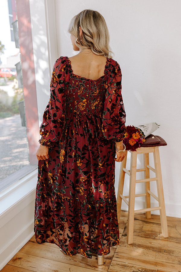 Harvest Garden Velvet Burnout Midi in Windsor Wine