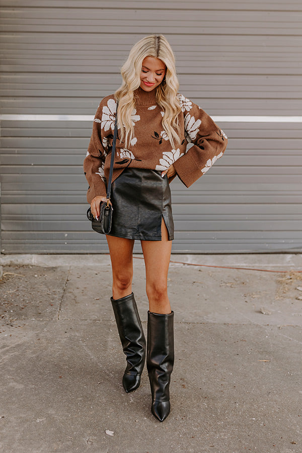 - Embrace the charm of autumn with this chic floral sweater! its delightful design combines the beauty of blooming florals with the warm, inviting harvest hues of the season. Style it with your favorite jeans or a chic skirt for a look that's both trendy and timeless!