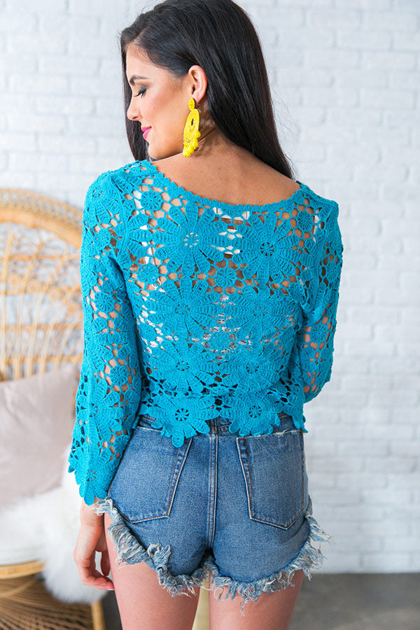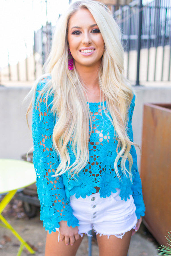 Haute As Hello Crochet Top in Ocean Blue