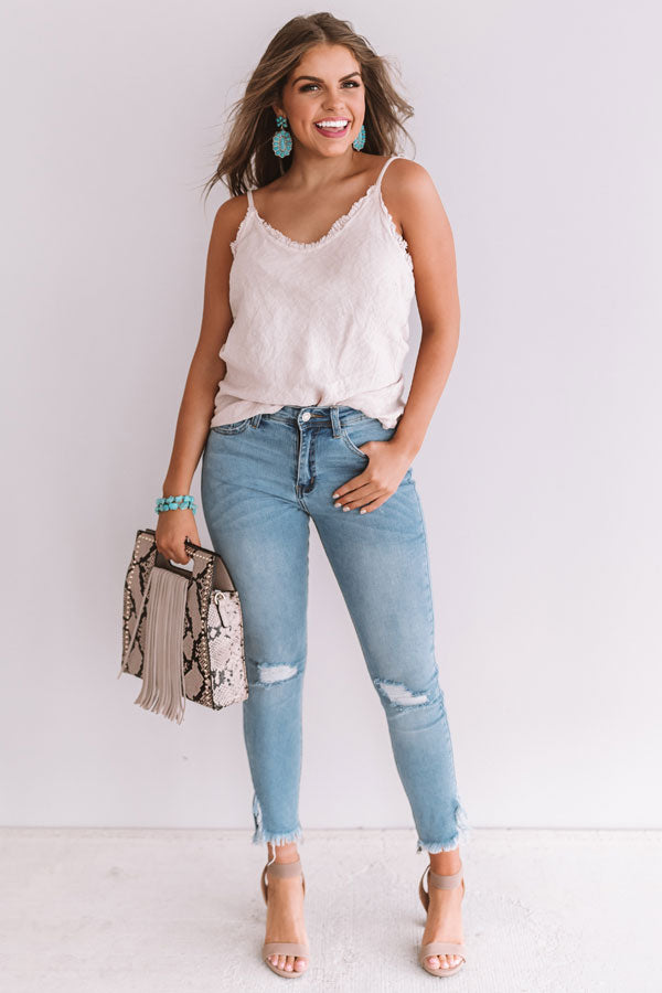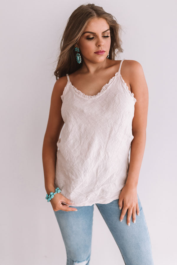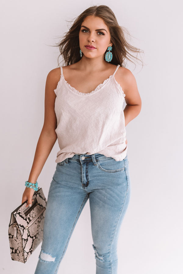 If you are trying to look haute while in the heat this summer, then this blush shift tank is perfect for your style! It features canvas fabric, adjustable spaghetti straps, and ruffled trim! Pair with your favorite summer jeans, a snake print purse, and some strappy sandals for a lightweight and trendy warm weather look! Measurements