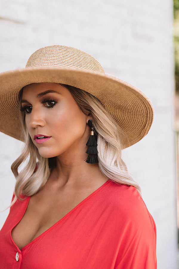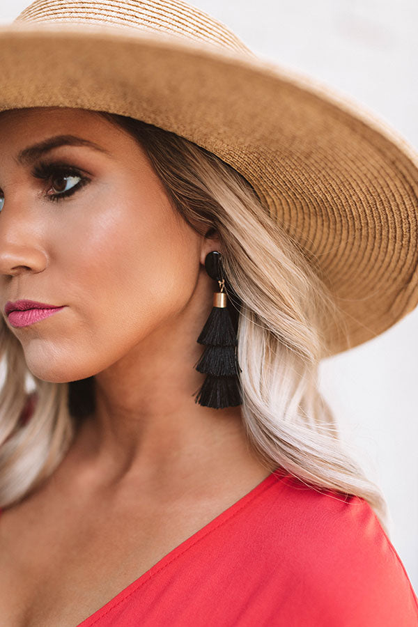 This just in..."haute off the press!" We've found the perfect black earrings that can be worn all year round with their shiny ball stud and three tiered tassels!