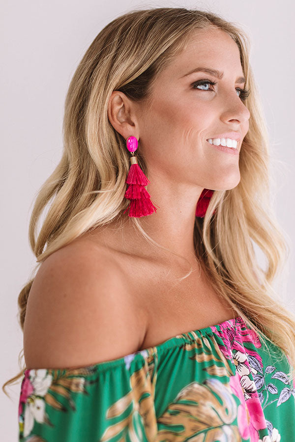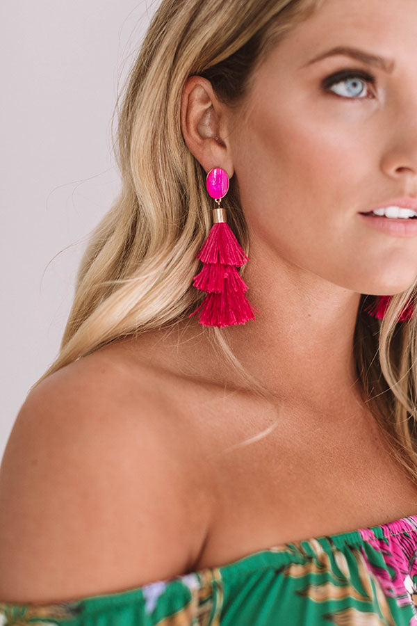 This just in..."haute off the press!" We've found the perfect fuchsia earrings that can be worn all year round with their shiny ball stud and three tiered tassels!