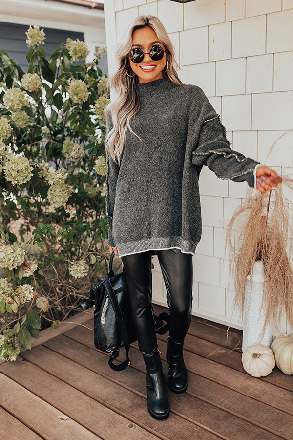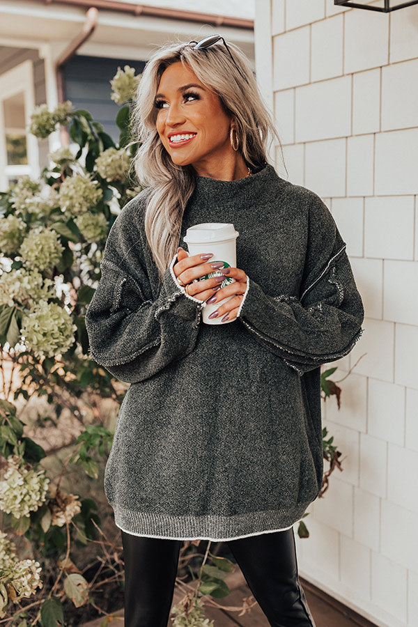 Today's an add to cart kind of day, so treat yourself to our charming forest colored 'Haute Tea' sweater featuring ultra soft lightweight chenille material, a high neckline, long loose sleeves with fitted cuffs that can be rolled and exposed accent seams, and an ultra slouched silhouette that falls into a straight ribbed hemline!