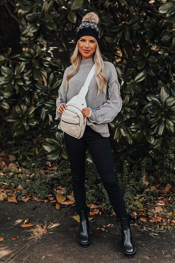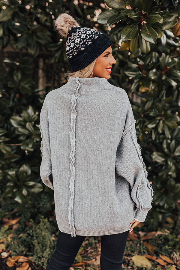 Today's an add to cart kind of day, so treat yourself to our charming grey colored 'Haute Tea' sweater featuring ultra soft lightweight chenille material, a high neckline, long loose sleeves with fitted cuffs that can be rolled and exposed accent seams, and an ultra slouched silhouette that falls into a straight ribbed hemline!