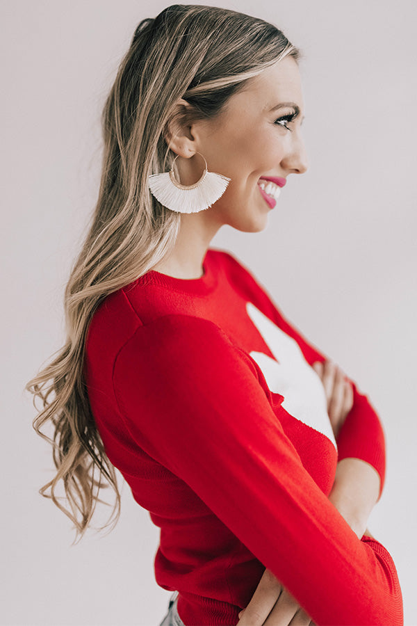 Show up to "Havana Happy Hour" in style with these adorable statement earrings featuring dainty gold hoops with ivory colored tassel fans!