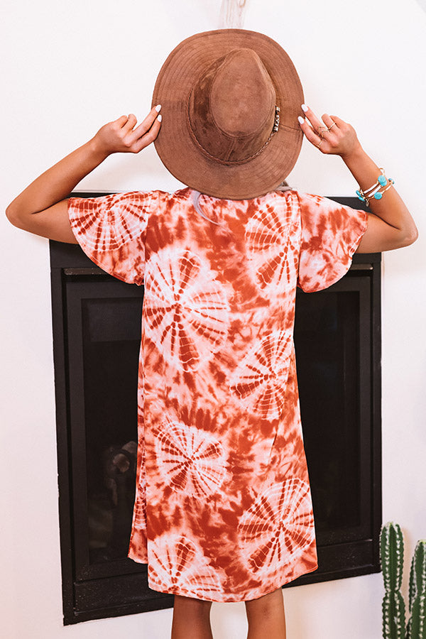 You can "have it all" with this adorable shift dress featuring lightweight material patterned with orange tie dye, a v-cut neckline, short loose sleeves, and an ultra relaxed silhouette that falls into a straight mid-thigh length hemline! We have styled this vibrant piece with some white wedged booties and a brown faux suede hat, but you can also wear it with "The Tess Studded Sandal in Tangerine" and our "Costa Kisses Woven Tote!" Measurements