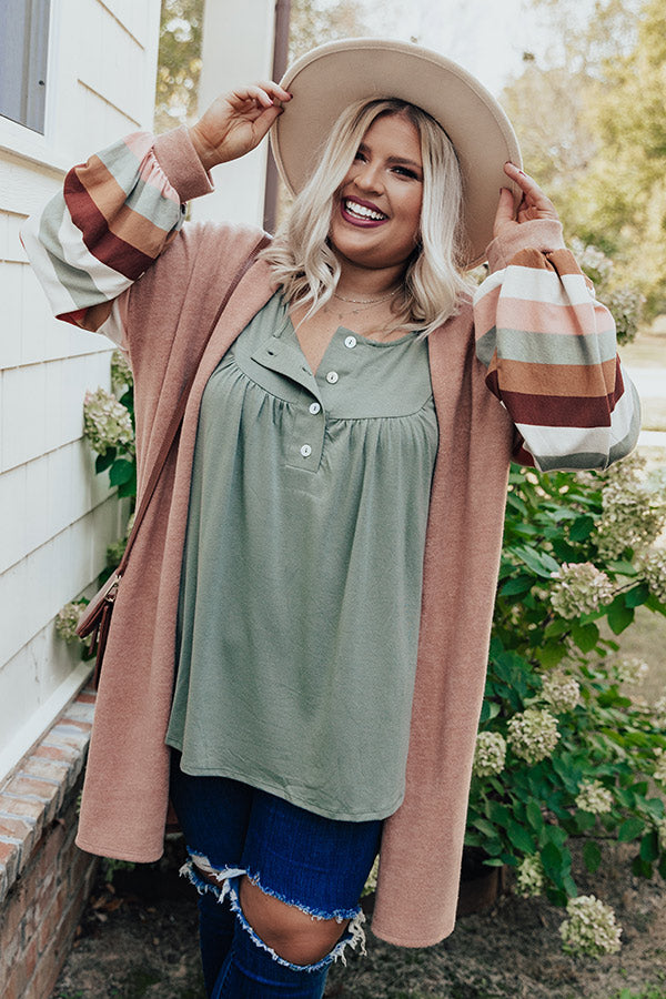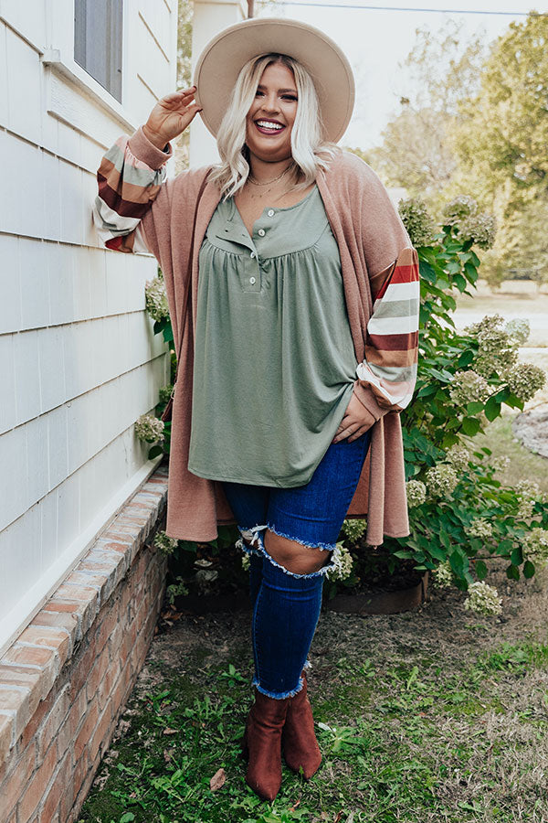 Hayride Happiness Cardigan In Light Rust Curves
