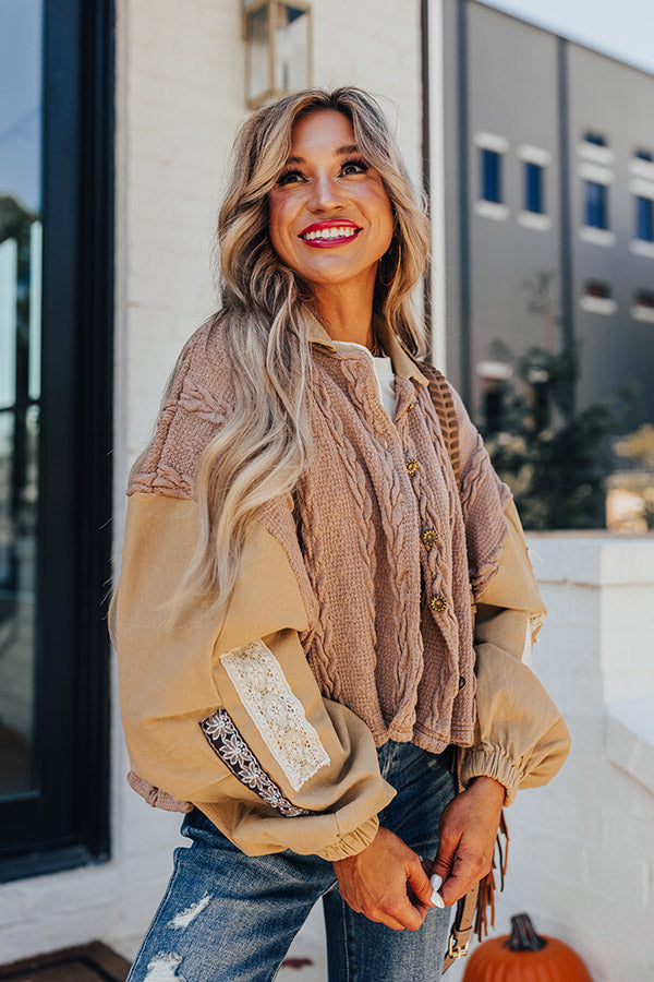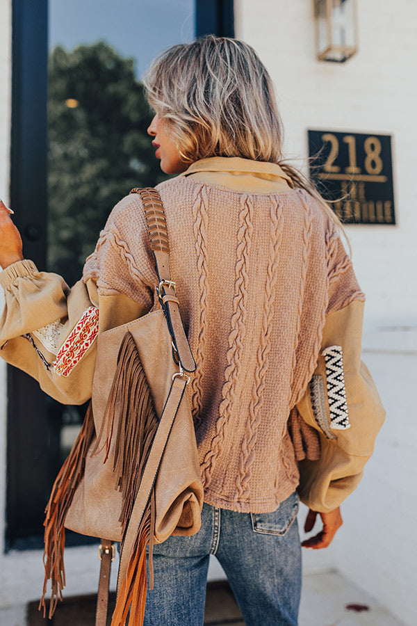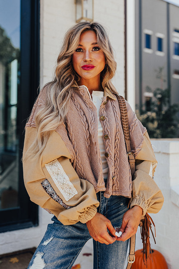- Unlined multi textured knit material with stretchy denim material at the collar and sleeves