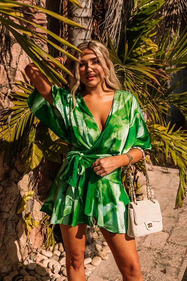 - We're obsessed with the tropical vibes that this gorgeous wrap romper is giving!