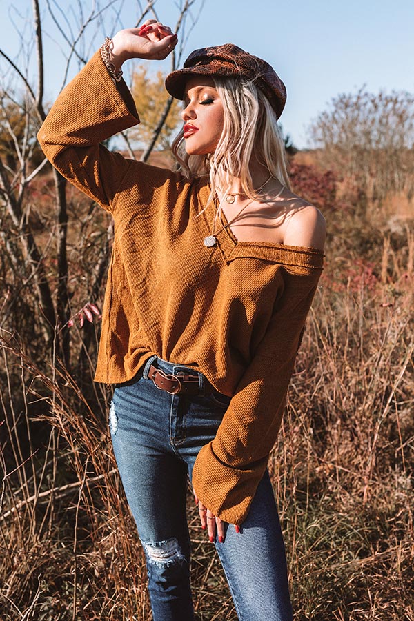 Okay, hear us out...this camel colored shift top will look ADORABLE on you! it features soft lightweight material with subtle ribbed texturing, a wide v-cut neckline that can be worn off one shoulder, long loose sleeves, exposed accent seams, and a slouched silhouette that ends in a straight hemline!