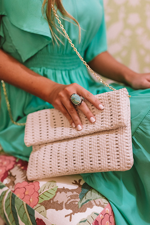 Heart Of The City Faux Leather Clutch in Ivory