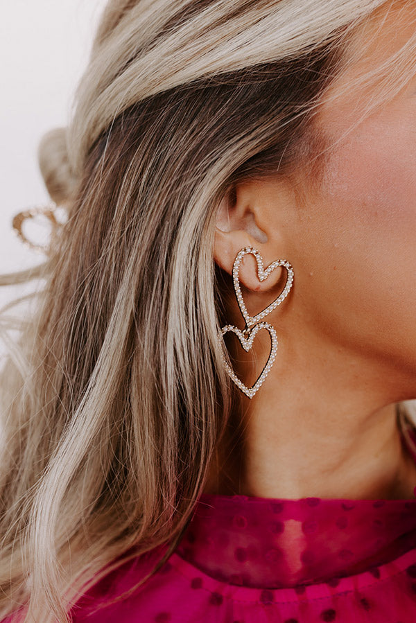 - Gold earrings with glamourous faux pearls in a dangling double heart design