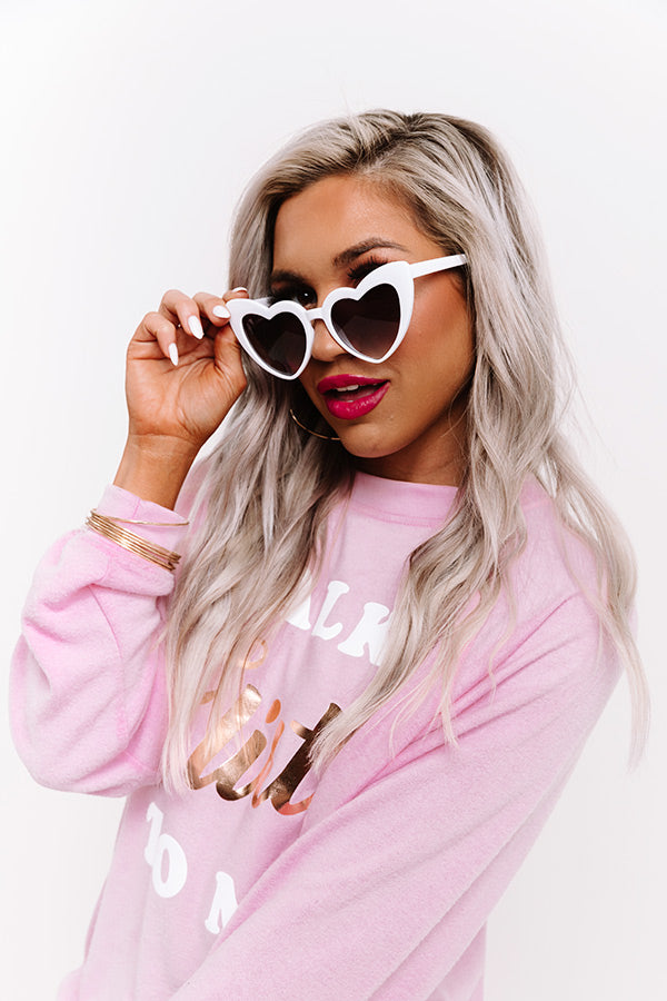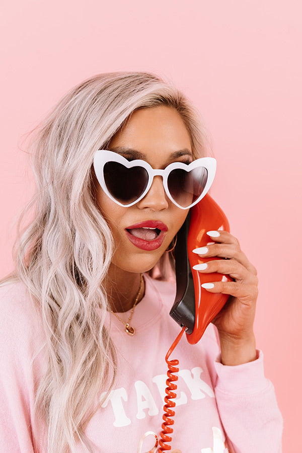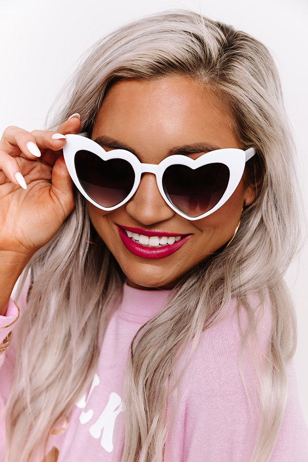 All you need is love and our adorable white 'Hearts And Kisses Sunnies' featuring lightweight heart shaped frames and dark tinted lenses!