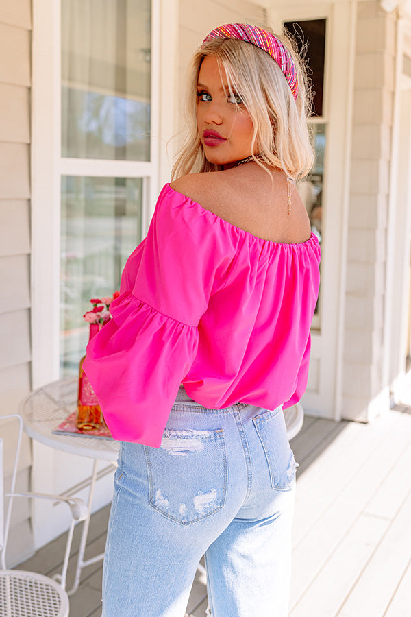 Stay flirty in our eye-catching hot pink 'Hearts In Love Top' featuring lightweight material, a straight elastic off-shoulder neckline, oversized puff half drop sleeves, and a slouched silhouette that ends in a straight hemline! on products