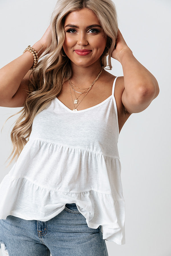 Your heart will be so happy when you incorporate this charming white tank into your look with its soft and lightweight flowy material, wide v-cut neckline, adjustable spaghetti straps, and a relaxed tiered babydoll silhouette that falls into an uneven hemline! Measurements