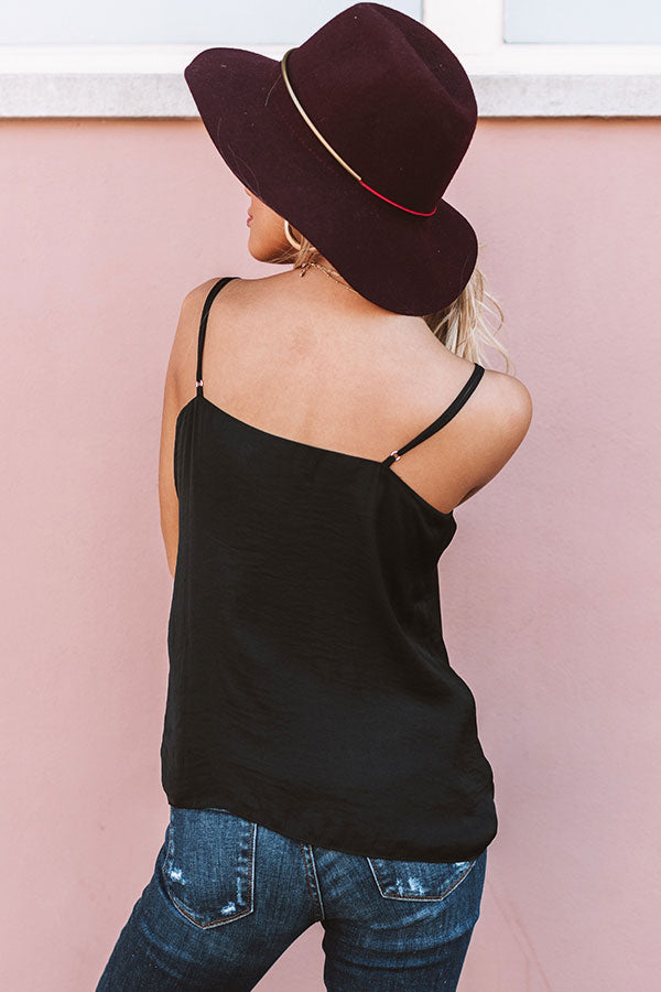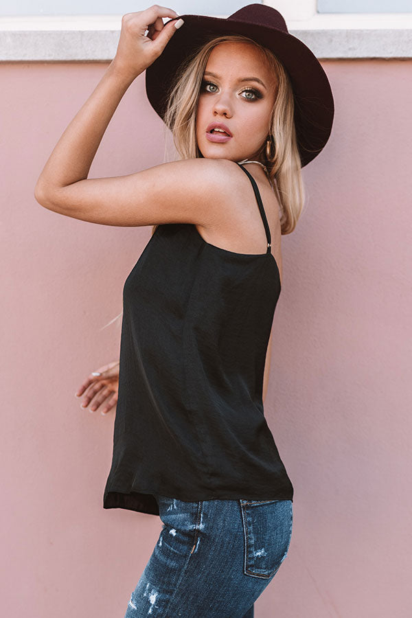 In the "heat of the moment," it can be hard to pick out the perfect OOTD, but this black tank with its spaghetti straps, loose fit, and v-neck lace trim, makes it easy! This versatile basic can be styled with anything, from trousers to skirts and bell bottoms to shorts! If you are going for a monochromatic look, we suggest styling with our "Make It Pop High Waist Pants in Black," black heels, and our "Instant Attraction Earrings in Black!" Measurements