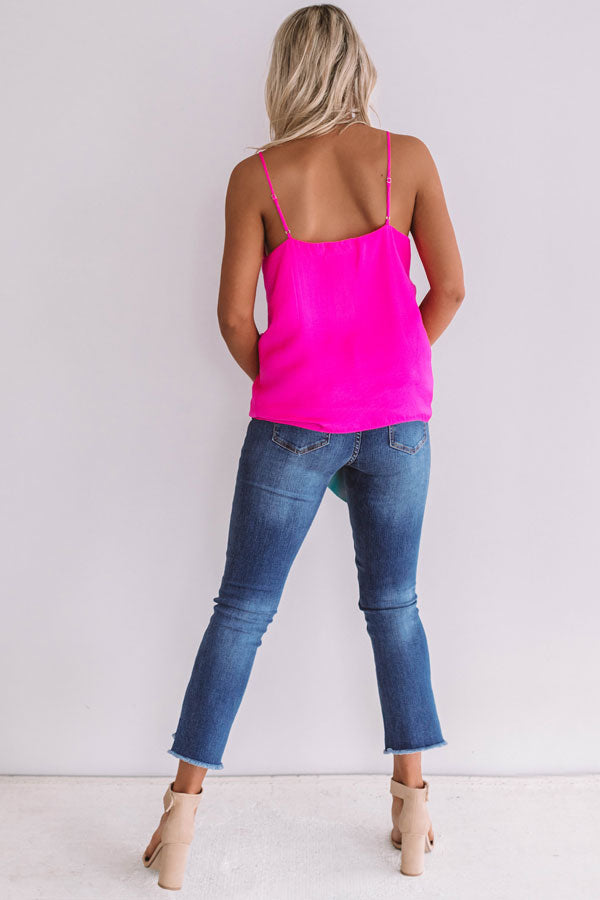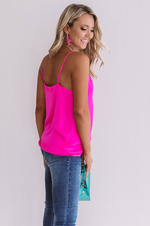 In the "heat of the moment," it can be hard to pick out the perfect OOTD, but this hot pink tank with its spaghetti straps, loose fit, and v-neck lace trim, makes it easy! This versatile basic can be styled with anything, from trousers to skirts and bell bottoms to shorts! If you are going for a monochromatic look, we suggest styling with our "Straight to The Top High Waist Pants in White," hot pink wedges, and our "Pass Play Earrings in Hot Pink!" Measurements