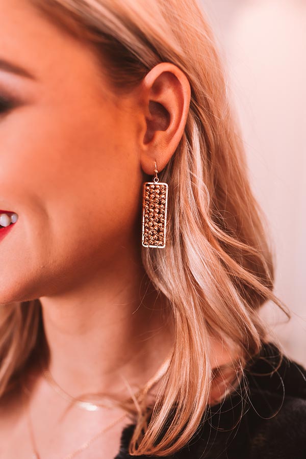 These stunning statement earrings are heavenly with their dangling rectangular shape and gold beaded detailing!