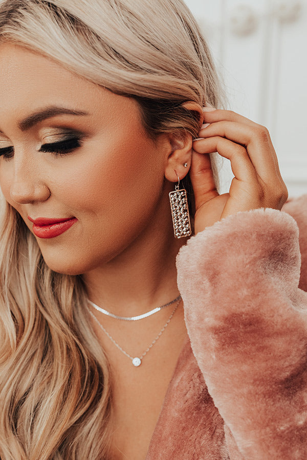 These stunning statement earrings are heavenly with their dangling rectangular shape and silver beaded detailing!