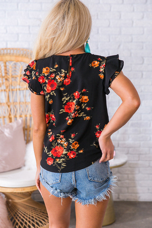 You can't GROW wrong with this fabulous floral top! This blooming beauty has flirty flounce sleeves, a keyhole cut-out neckline & a breezy relaxed bodice. Style with your favorite denim for a feminine floral look that's sweet & sophisticated.