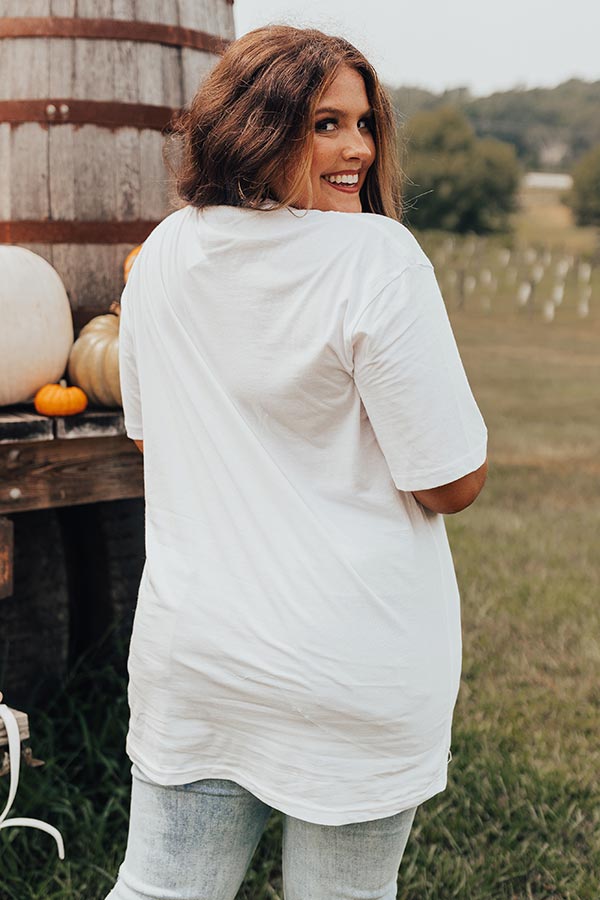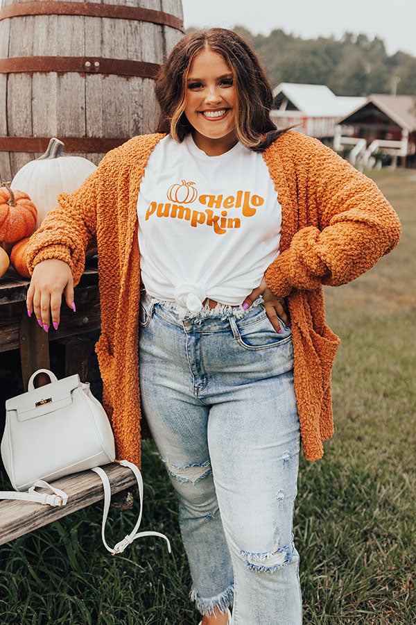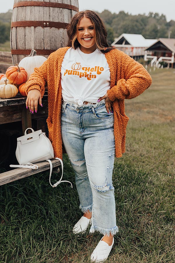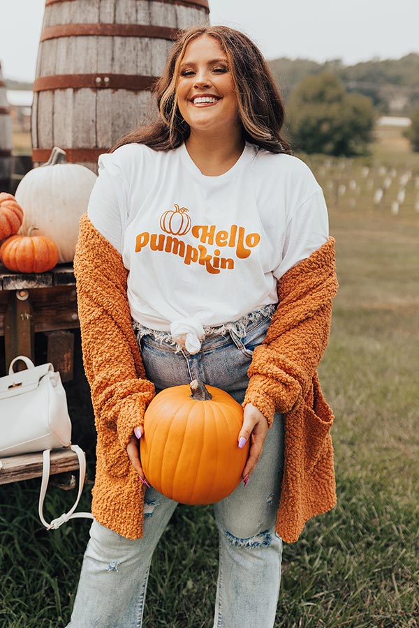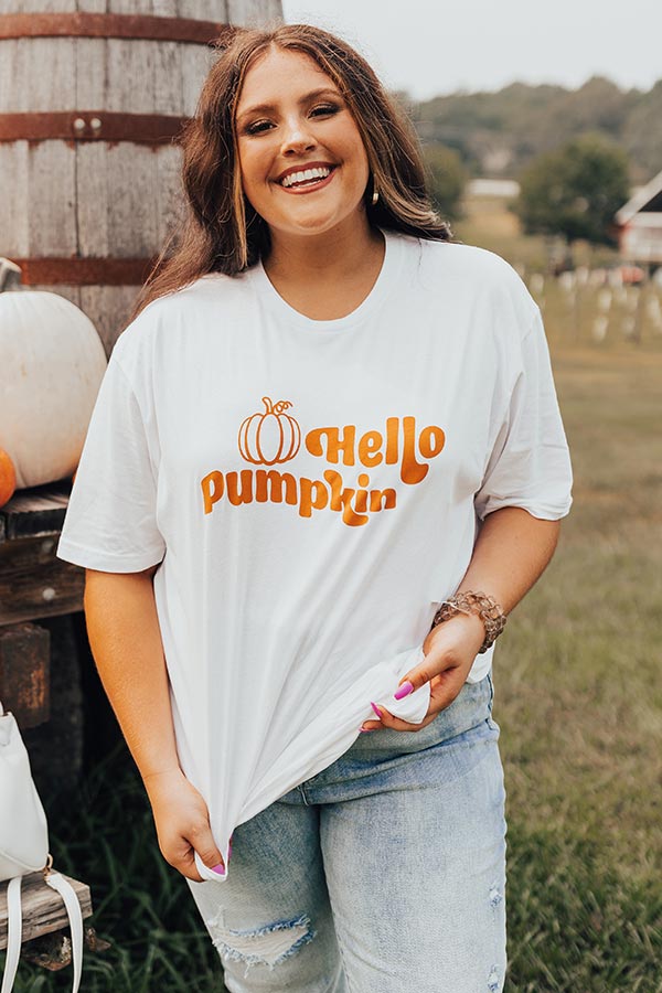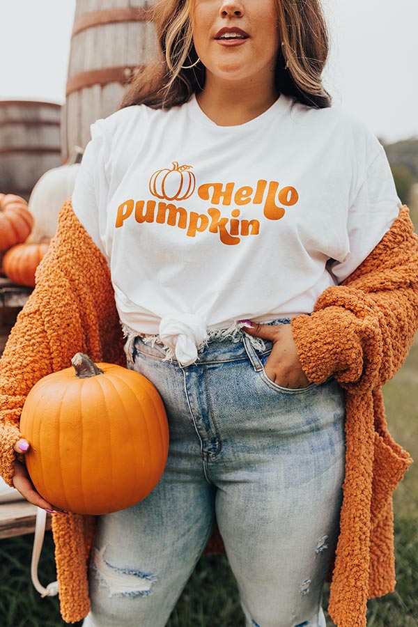 Plus Size - Hello pumpkin...we have the perfect fall tee for you! This cute white tee features soft and lightweight cotton blend material with an orange pumpkin graphic on the front, a rounded hemline, short loose sleeves, and a slouched silhouette that ends in a straight hemline! Measurements
