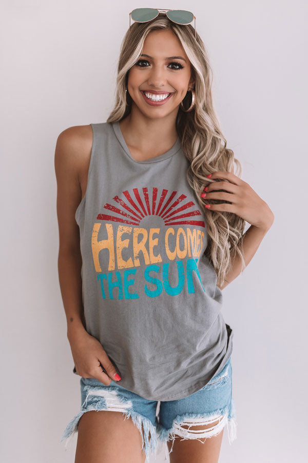 Here Comes The Sun Boyfriend Tank in Dark Grey