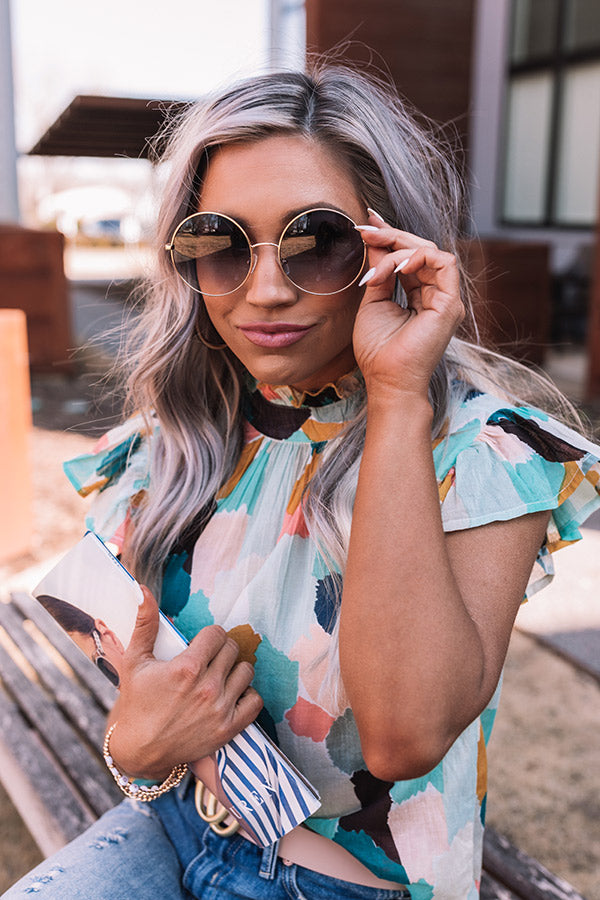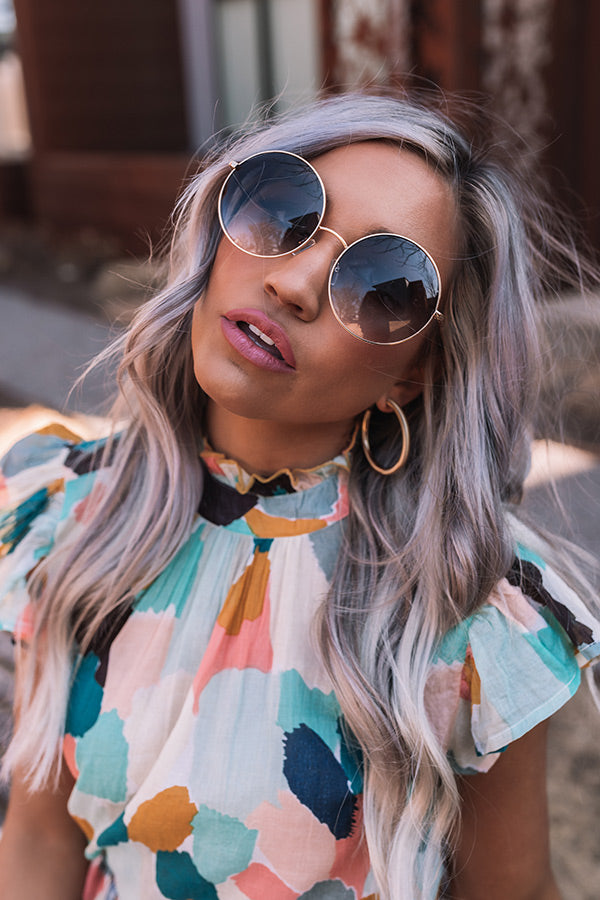 Stay groovy all summer long with our retro 'Here For Happy Hour Sunnies' featuring dainty gold circle frames with dark tinted lenses!