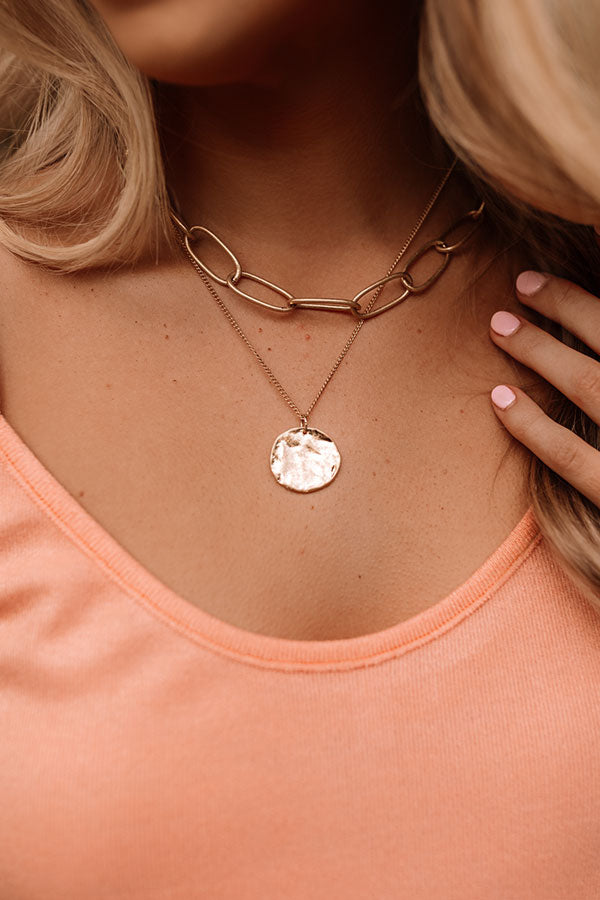 Life's a party, so accessorize like it with this luxe gold necklace featuring two layered pieces: a large paperclip link chain and a longer dainty chain with a stamped circle pendant!