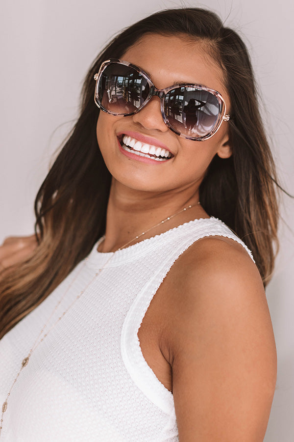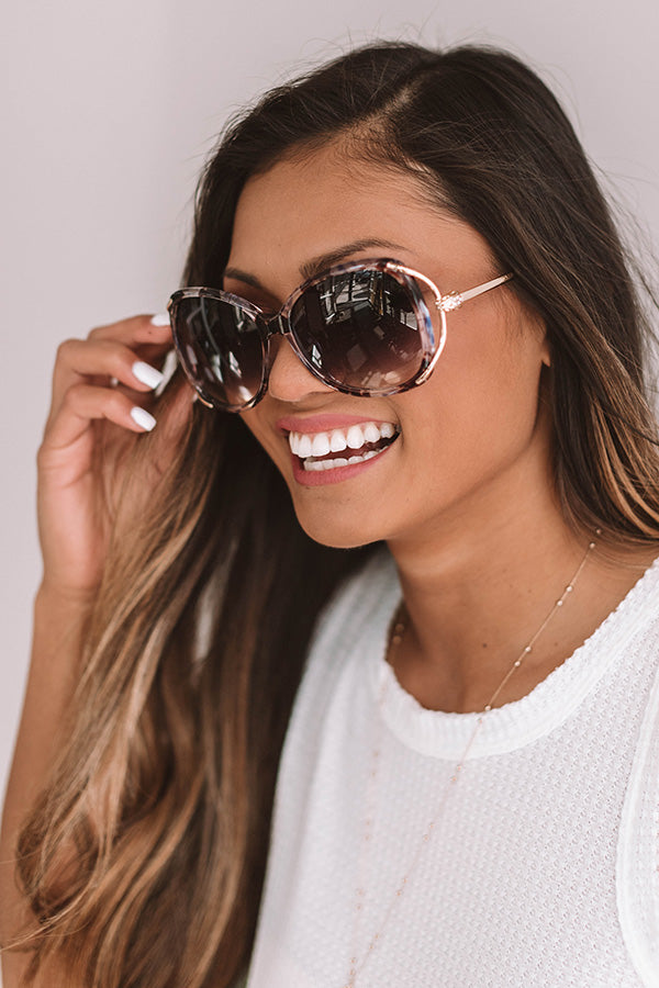 You will a summer bombshell in these multi colored sunnies with their dark lenses, oversized frames, and golden earpieces!