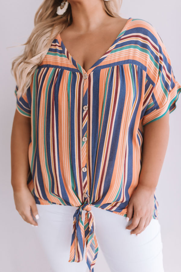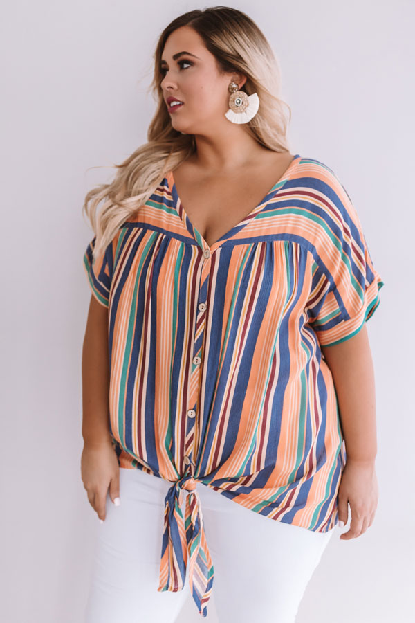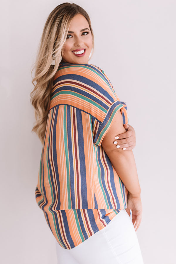 Hey, Happy Hour Stripe Top in Persimmon Curves