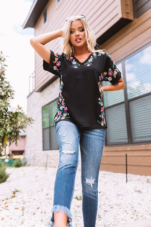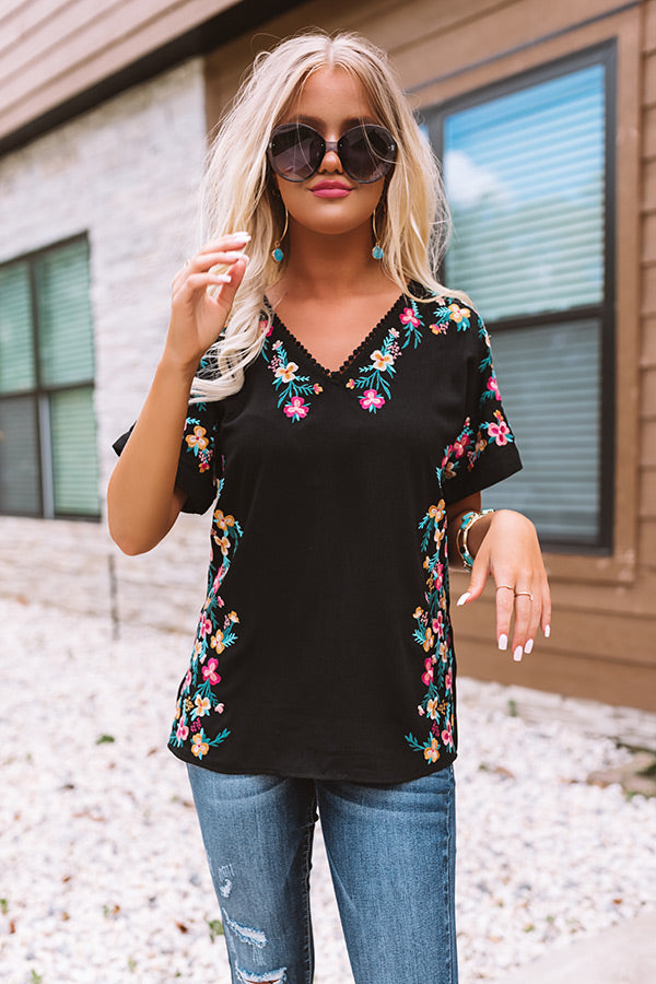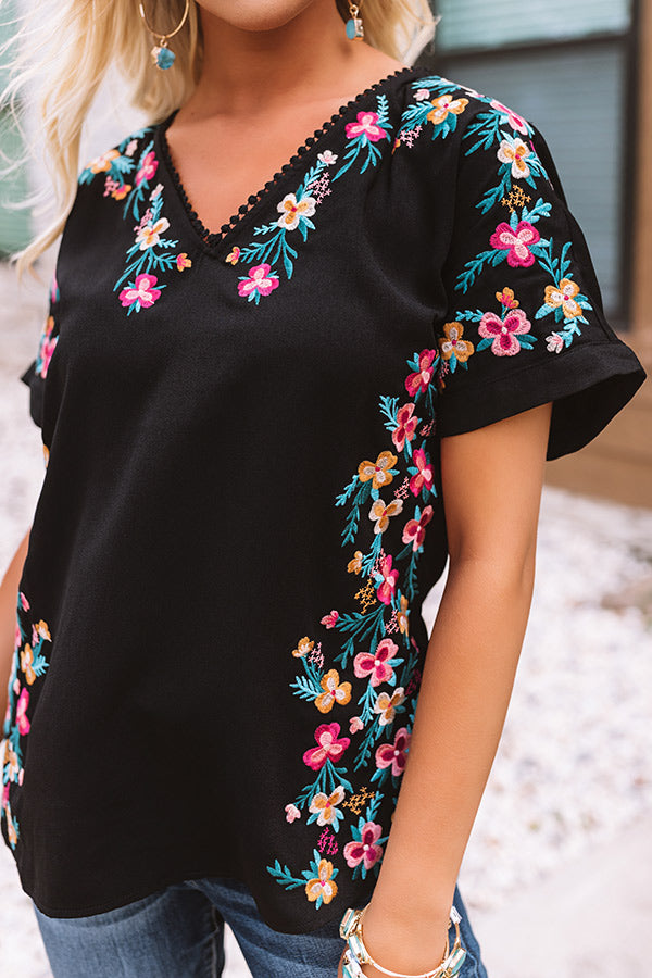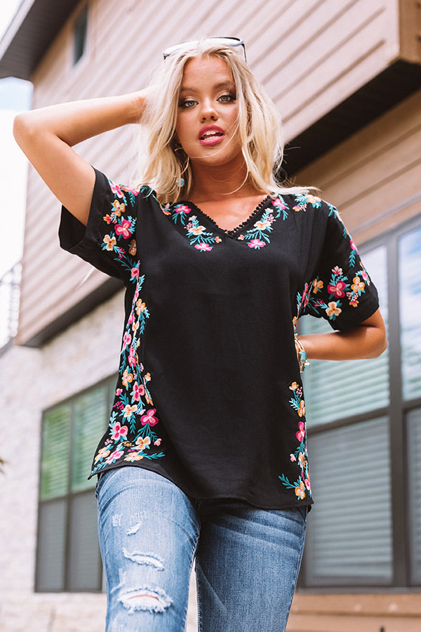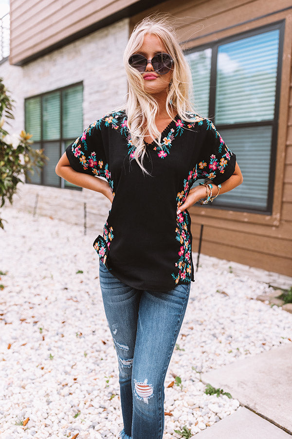 Hey, Senorita Embroidered Top In Black