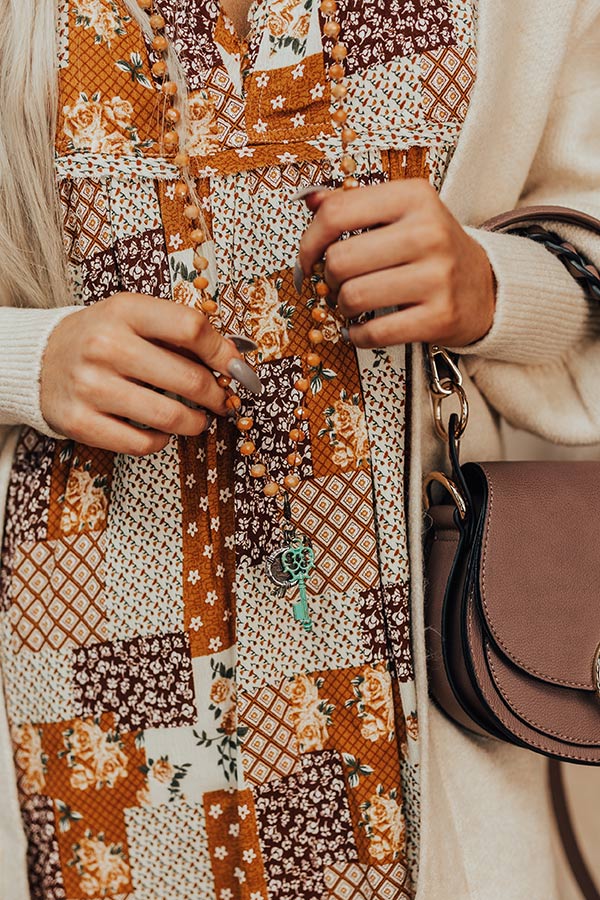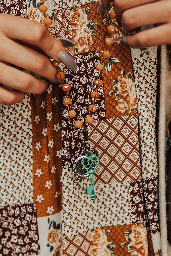 Add a boho touch to any look with our adorable 'Hidden Attraction Necklace' featuring a long rust beaded chain with a turquoise key accent!