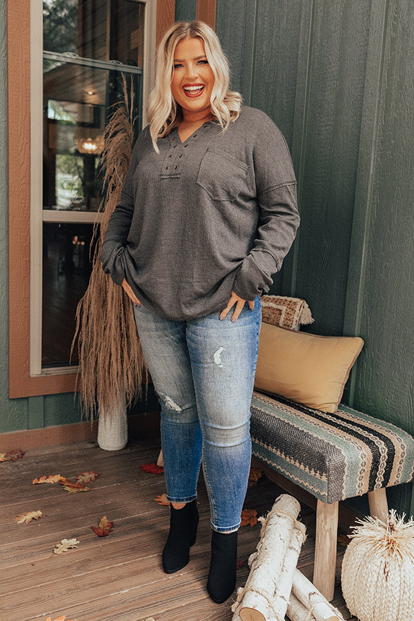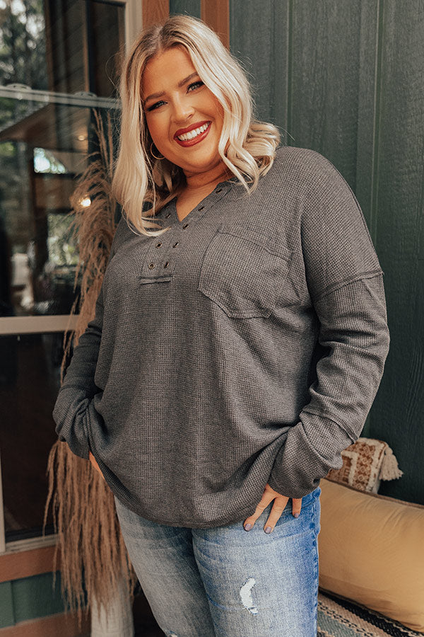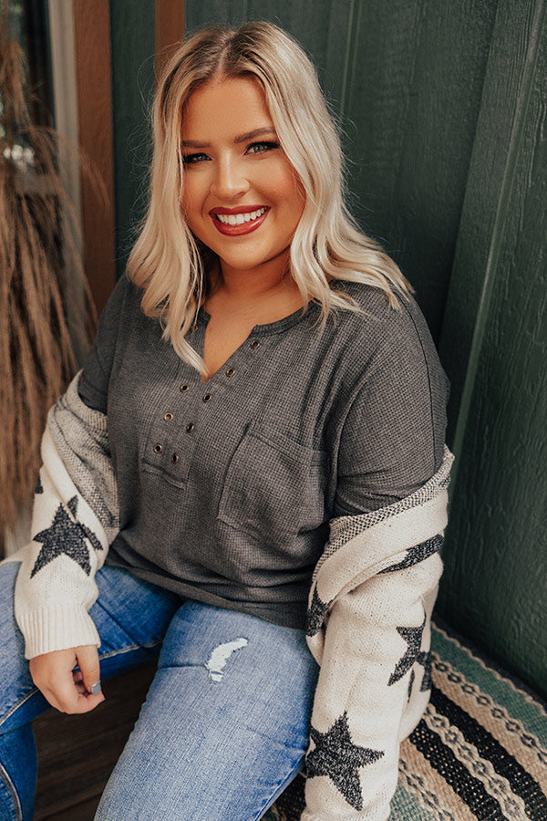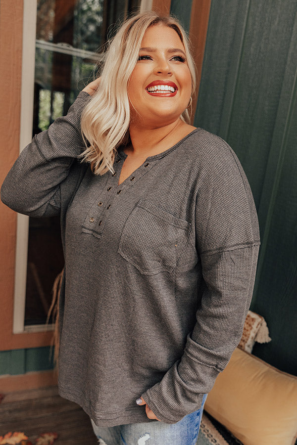 Hidden Trail Henley Top In Charcoal Curves