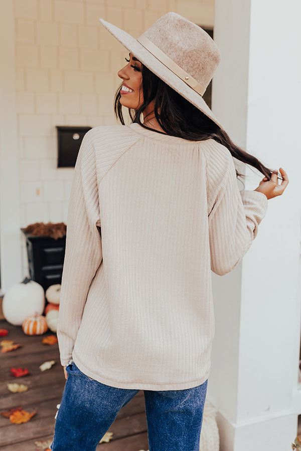 Look casual comfortably in our versatile iced latte colored "Highest Hope Shift Top" featuring lightweight material with subtle ribbed texturing, a button up bodice with a high rounded neckline, long loose sleeves, and a slouched silhouette that falls into a rounded hemline with accent side slits! Measurements