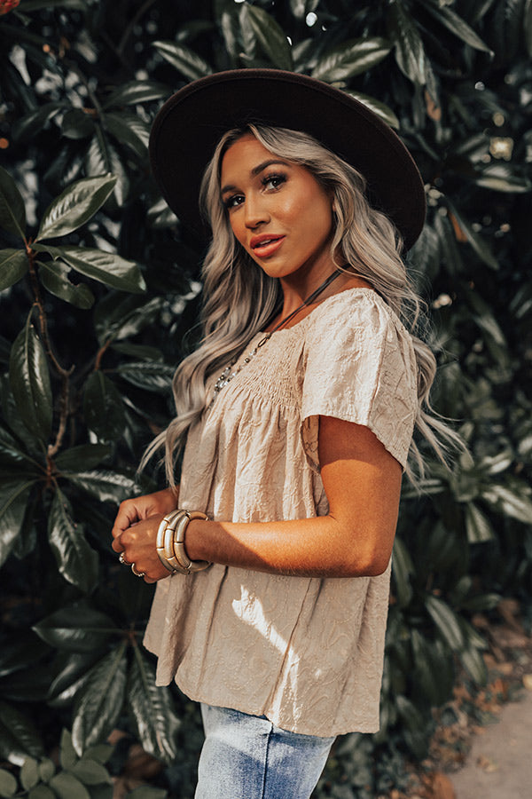 Slay all day in our cute natural hued 'Highway Home Shift Top' featuring lightweight material with crinkled texturing, a high square neckline, short sleeves that can be worn on- or off-shoulder, and a relaxed silhouette that ends in a straight hemline!