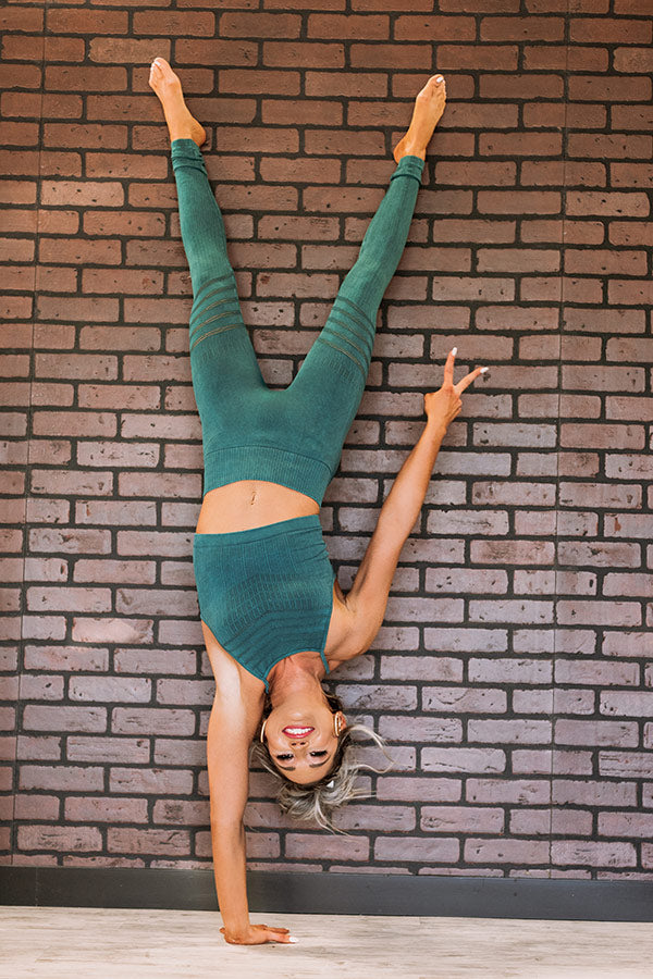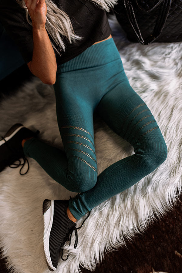 Take a hike looking stylish in these photo worthy jade hued active leggings featuring lightweight four-way stretch material with diagonal accents around the thighs, a high waistline for tummy control, and a flattering figure hugging silhouette that tapers into fitted ankle-length hemlines! Measurements