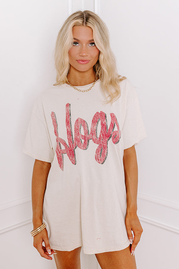 - Head to the hill for some game day tailgating in this trendy tee! With a vintage inspired design and spirited 'HOGS' graphic design, it's a perfect addition to any hog fan's wardrobe. WOOO PIG! Get the Game Day essentials for supporting your team: The Arkansas Razorbacks!