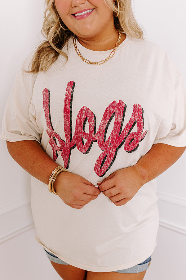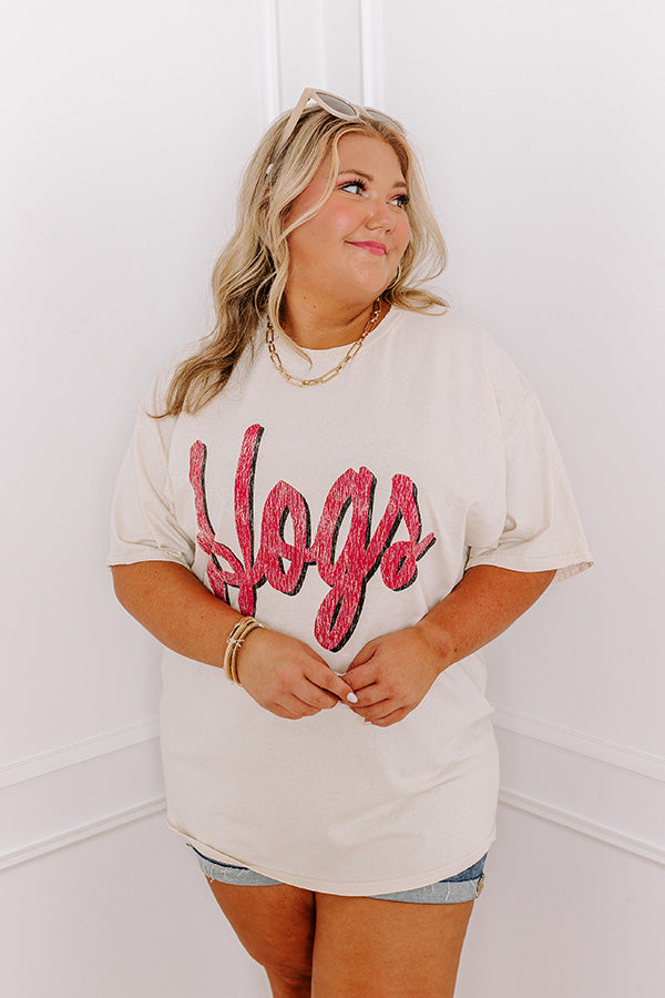 - Head to the hill for some game day tailgating in this trendy tee! With a vintage inspired design and spirited 'HOGS' graphic design, it's a perfect addition to any hog fan's wardrobe. WOOO PIG! Get the Game Day essentials for supporting your team: The Arkansas Razorbacks!