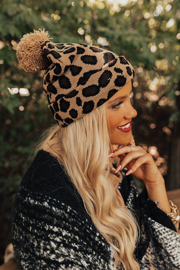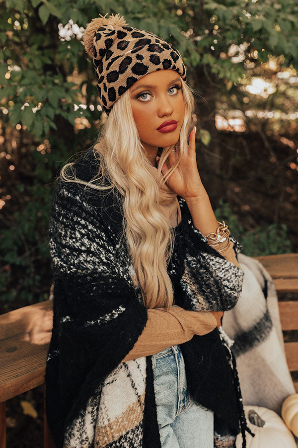 Make a statement this fall with our adorable khaki hued 'Hold My Latte' beanie featuring lightweight tight knit material patterned with a bold black and brown leopard print, a cuffed silhouette, and an accent pompom!