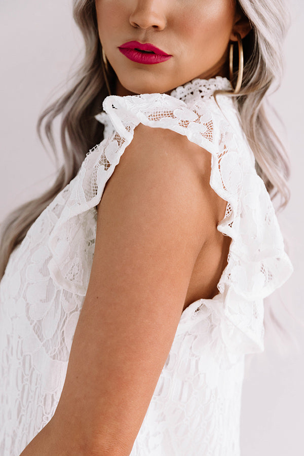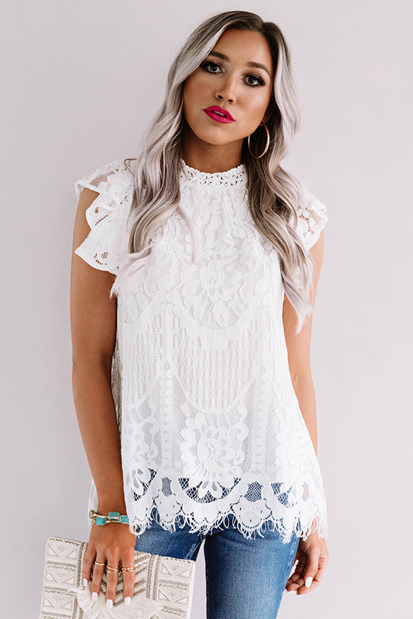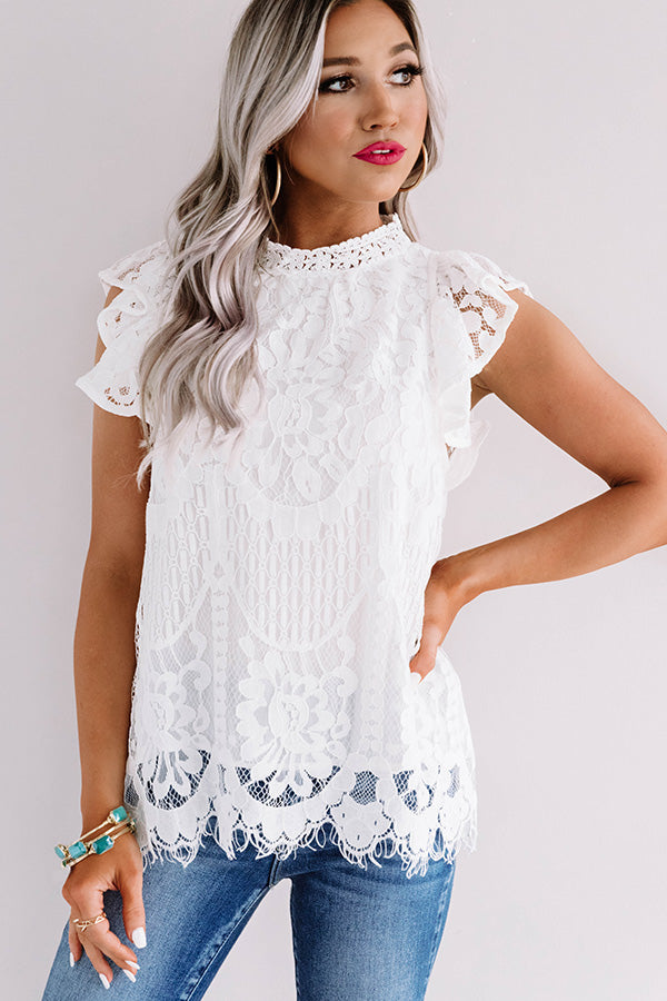 You will undoubtedly be the definition of elegance when you wear our darling white "Holding Hands" top featuring lightweight material with intricate semi-sheer lace detailing throughout, a high rounded neckline, short ruffled cap sleeves, a keyhole accented upper back with a button closure, and a relaxed silhouette that falls into a scalloped hemline! We have styled this gorgeous piece with some frayed skinnies and a neutral heel and clutch, but you can also wear it with some distressed black shorts, our white "Five Star Clear Strap Wedge," and our "Glimpse Of Gorgeous Embellished Headband in Black!" Measurements