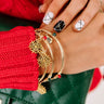 This adorable holiday bracelet features a gold plated copper wire single bangle stacker with red and green beads and is finished with a gold tag and snowflake charm! Each bangle sold separately.