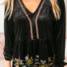 Holidays in Soho just got better! This embroidered peasant top is a must have! Perfect to throw on with jeans for your more relaxed holiday functions. Features embroidery around the neck and the bottom hem.