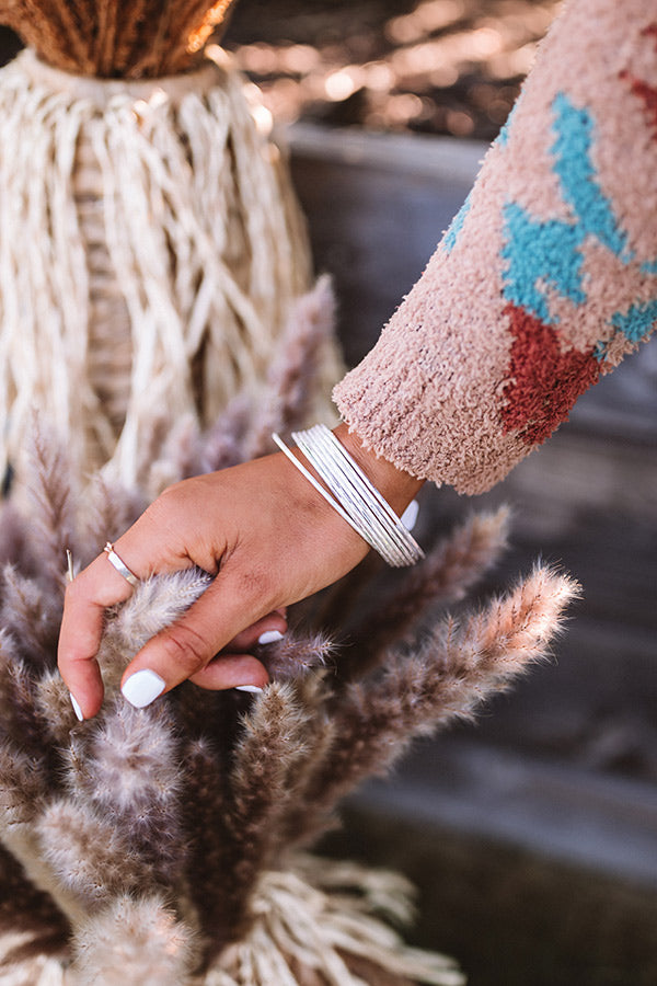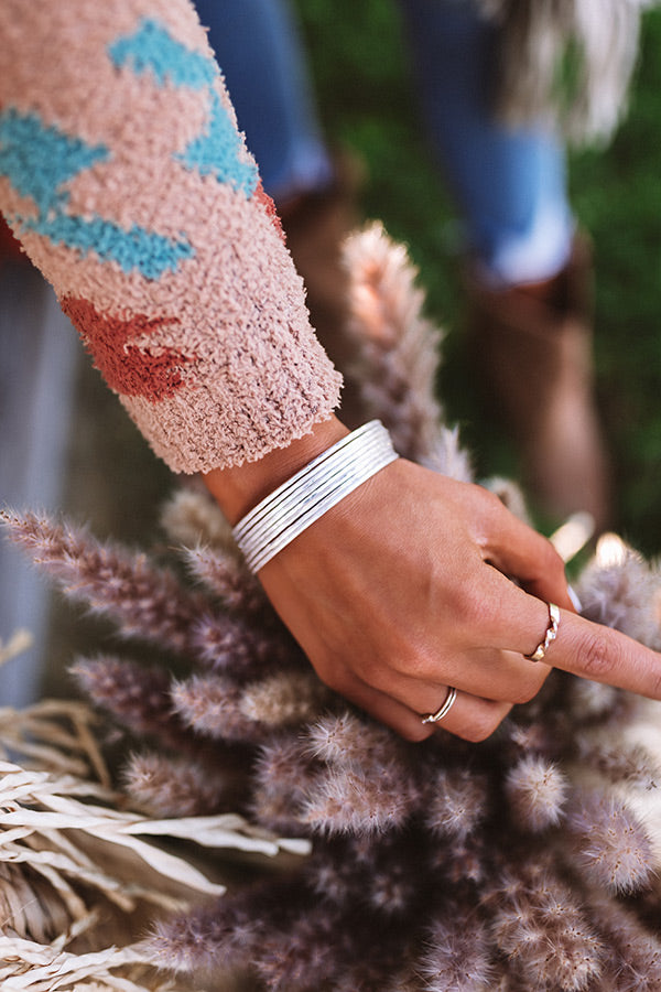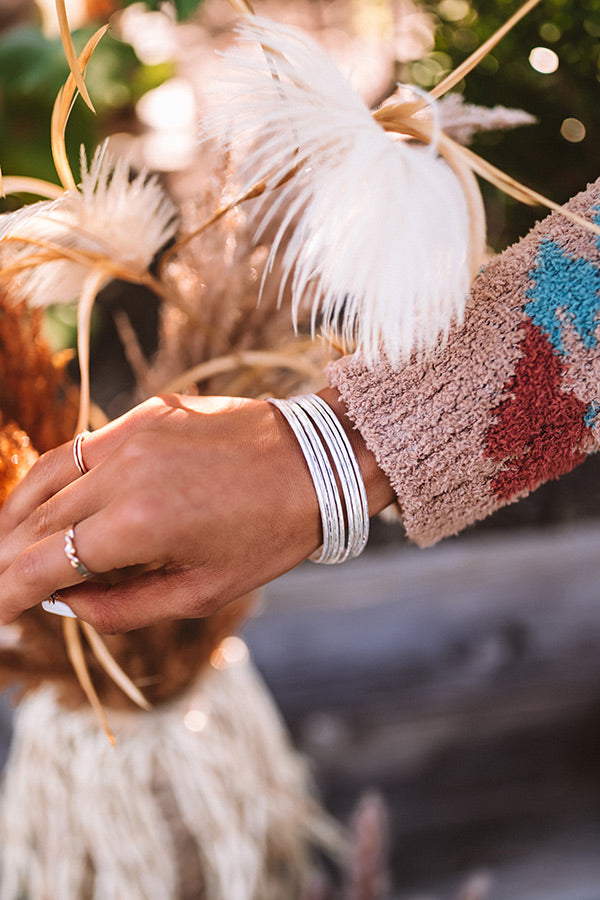 Add a subtle touch of glamour to your OOTD by accessorizing with this adorable bracelet set featuring eight dainty bright silver bangles!