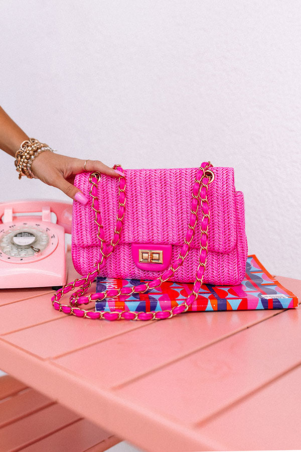 The ultimate summer bag just dropped! Our stunning hot pink 'Hollywood It List' tote features lightweight woven material, a flap closure with gold twist hardware, an adjustable chain link shoulder strap, and a spacious fully lined silhouette with an additional inside zip closure!
