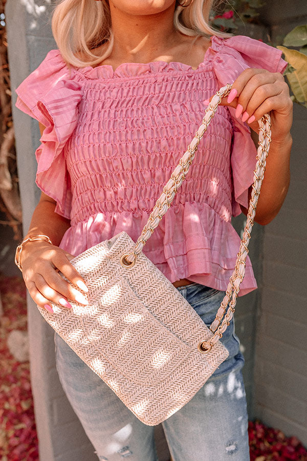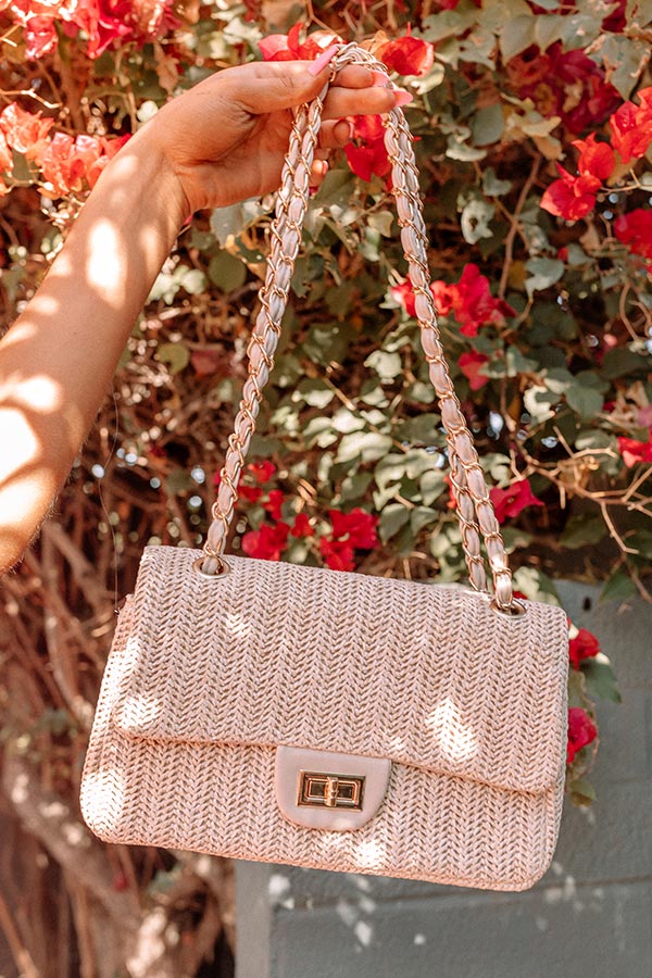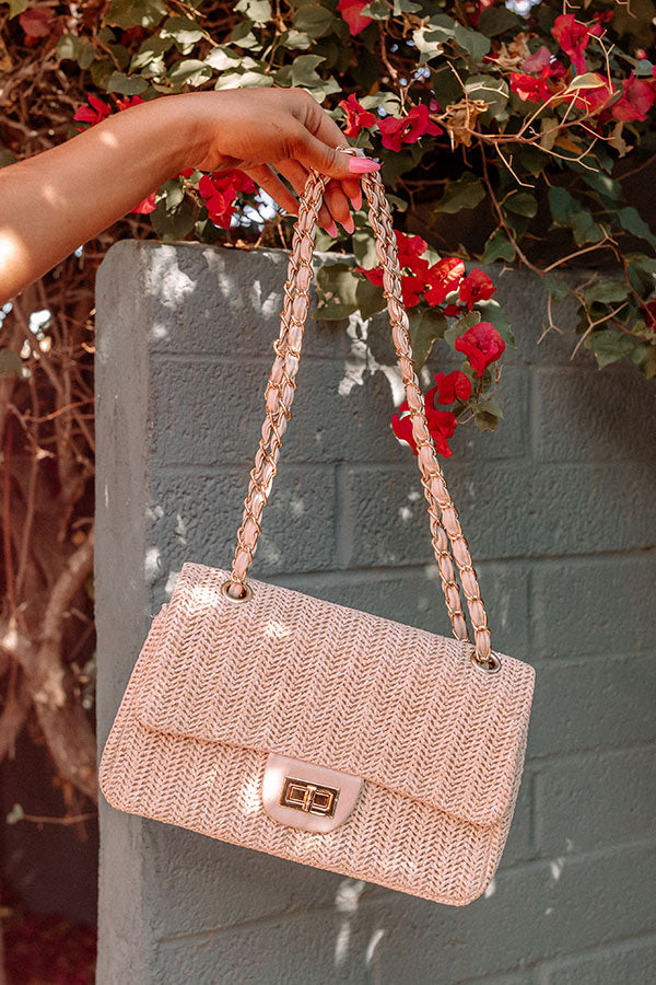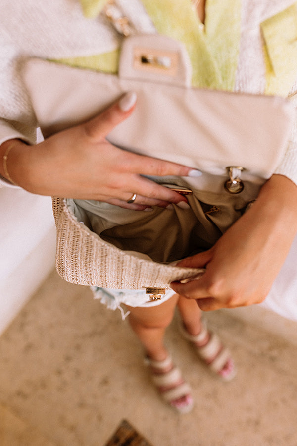 The ultimate summer bag just dropped! Our stunning natural hued 'Hollywood It List' tote features lightweight woven material, a flap closure with gold twist hardware, an adjustable chain link shoulder strap, and a spacious fully lined silhouette with an additional inside zip closure!