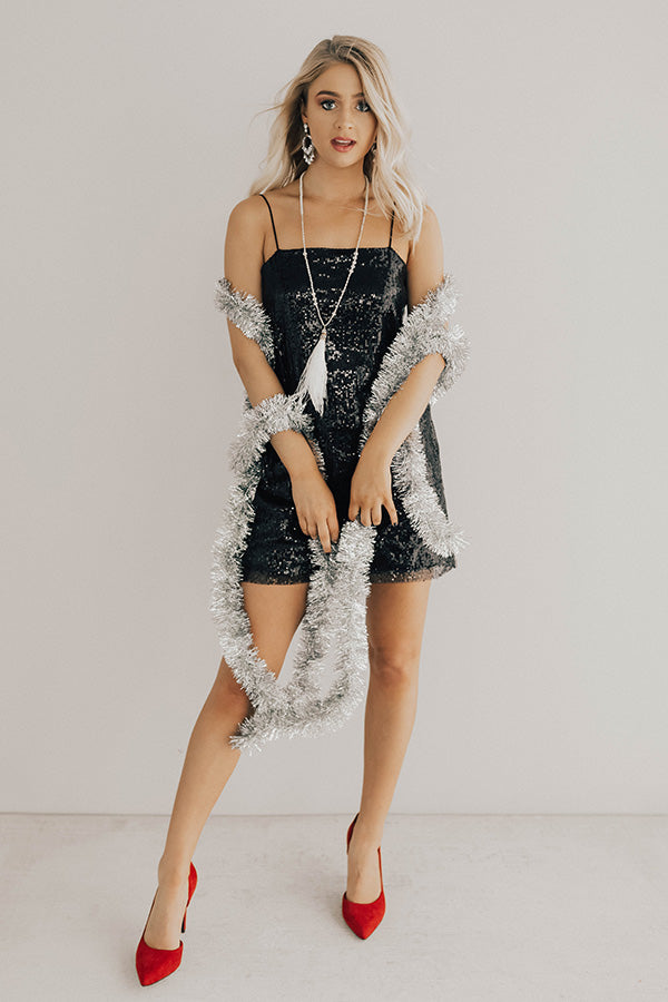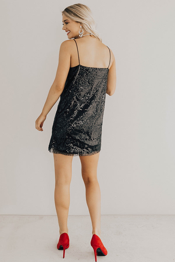Turn heads in this crowd pleaser! Covered in sequins, you'll always be shining. This slinky sassy dress features thin straps.