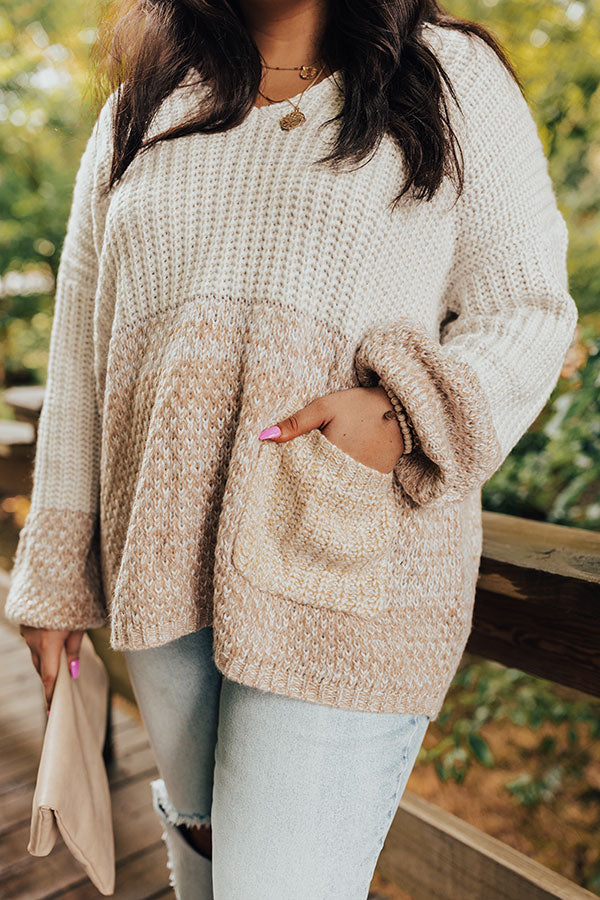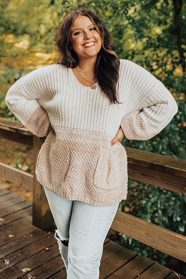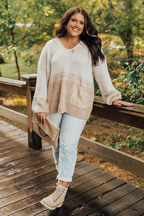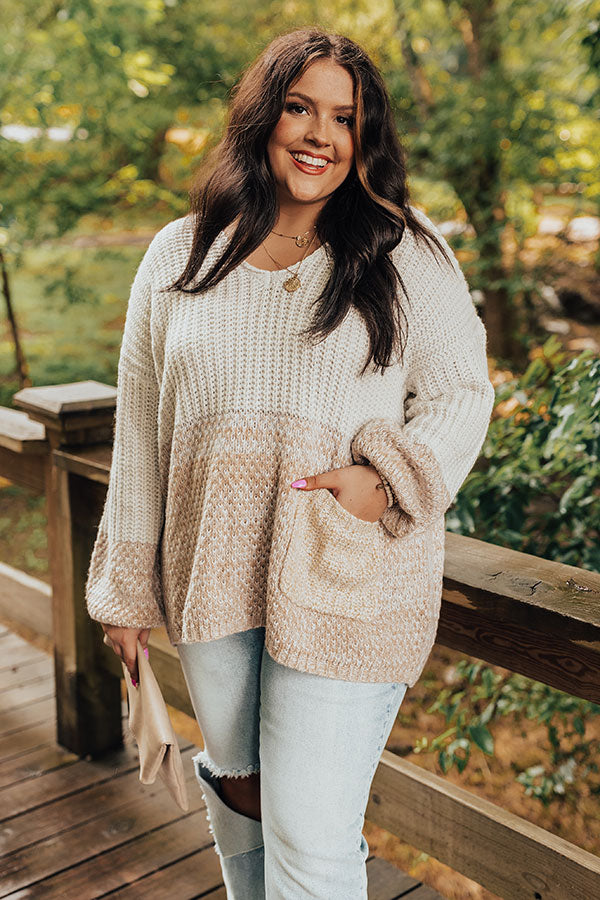 Hometown Roots Knit Sweater In Iced Latte Curves