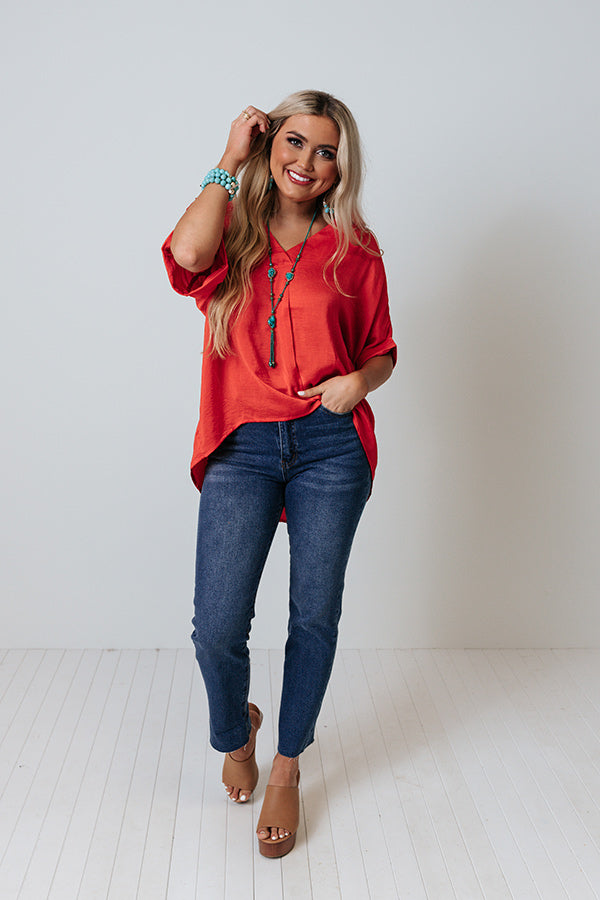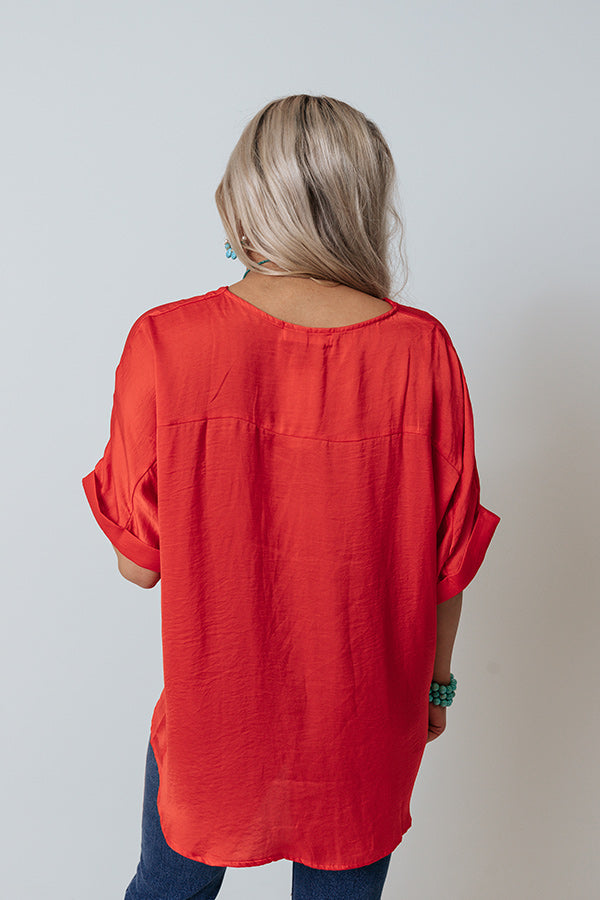 You will look so sweet in this chic red shift top featuring lightweight and breezy satin material, a v-cut neckline, short loose sleeves with rolled cuffs, and a draped silhouette that falls into a rounded tunic-length hemline! Measurements