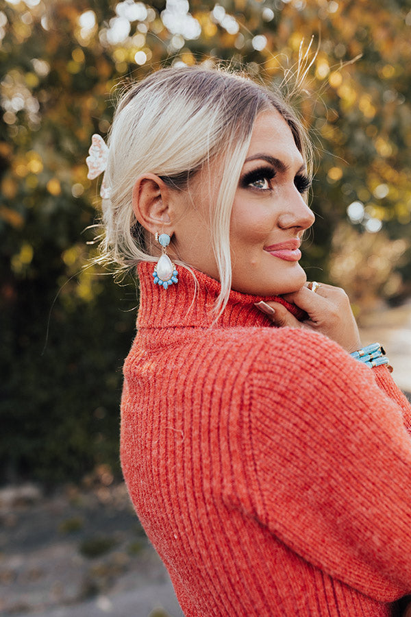 Add a touch of chic and shine to your look with these darling earrings! Features a faux turquoise stone stud set in gold trims with a dangling teardrop pendant with dainty rhinestones and turquoise bead accent!